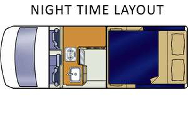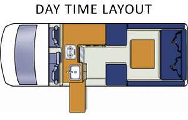 Automatic transmission, creative design and clever use of space means up to four adults and one child can travel and live in total comfort. The driving cabin has seating for three with a Radio/CD Player and auxiliary (MP3/Ipod) input. The two rear forward facing seats have lap/diagonal seat belts and child seat restraints can be easily fitted. The extra vertical space in the living area creates an airy, spacious feeling and ease of movement - and a good-sized double bed and roomy loft bed makes for comfortable sleeping. Every drawer and cupboard reveals a surprise - fridge, stove, microwve, wardrobe, crockery, cutlery, linen, towels and much more. With the Family 4+1 Campervan you not only get the freedom and comfort to travel where you wish, you can also enjoy the economy and ease of an engine running on diesel with automatic transmission.