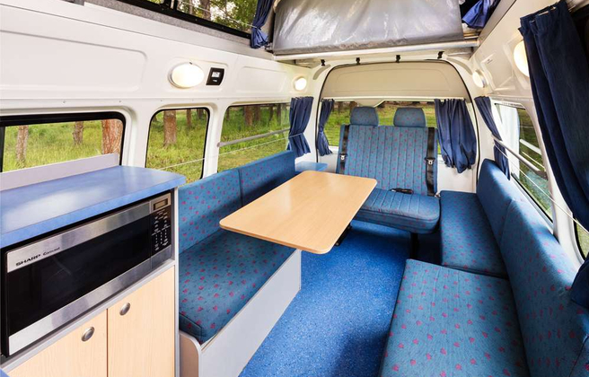 The 4+1 Path Finder camper seats up to 5 people. This roomy campervan really makes it easy for a group to sight see and drive in comfort. Fantastic for a family or group of friends.
